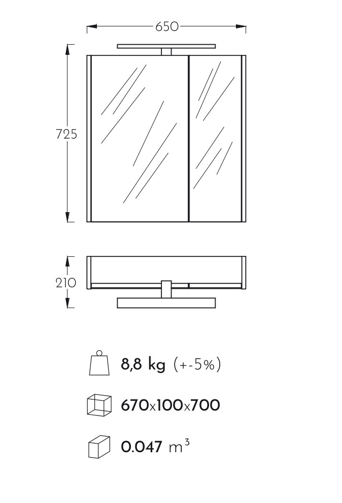 Atria F65 fehér Tükrösszekrény Ledvilágítással