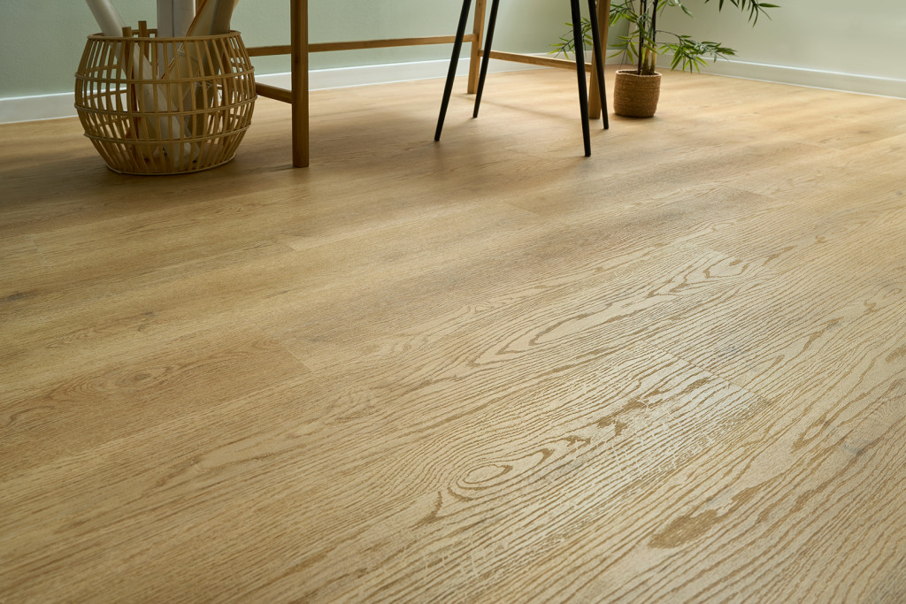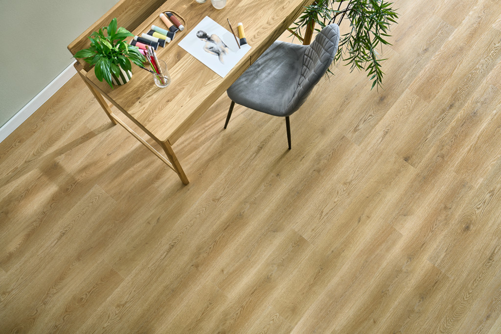 MAGAS MINŐSÉGŰ KLIKKES SPC PADLÓ A TERMÉSZETES TÖLGYFA SZÍNÉVEL, MELY ALÁTÉT HASZNÁLATÁT IGÉNYLI.