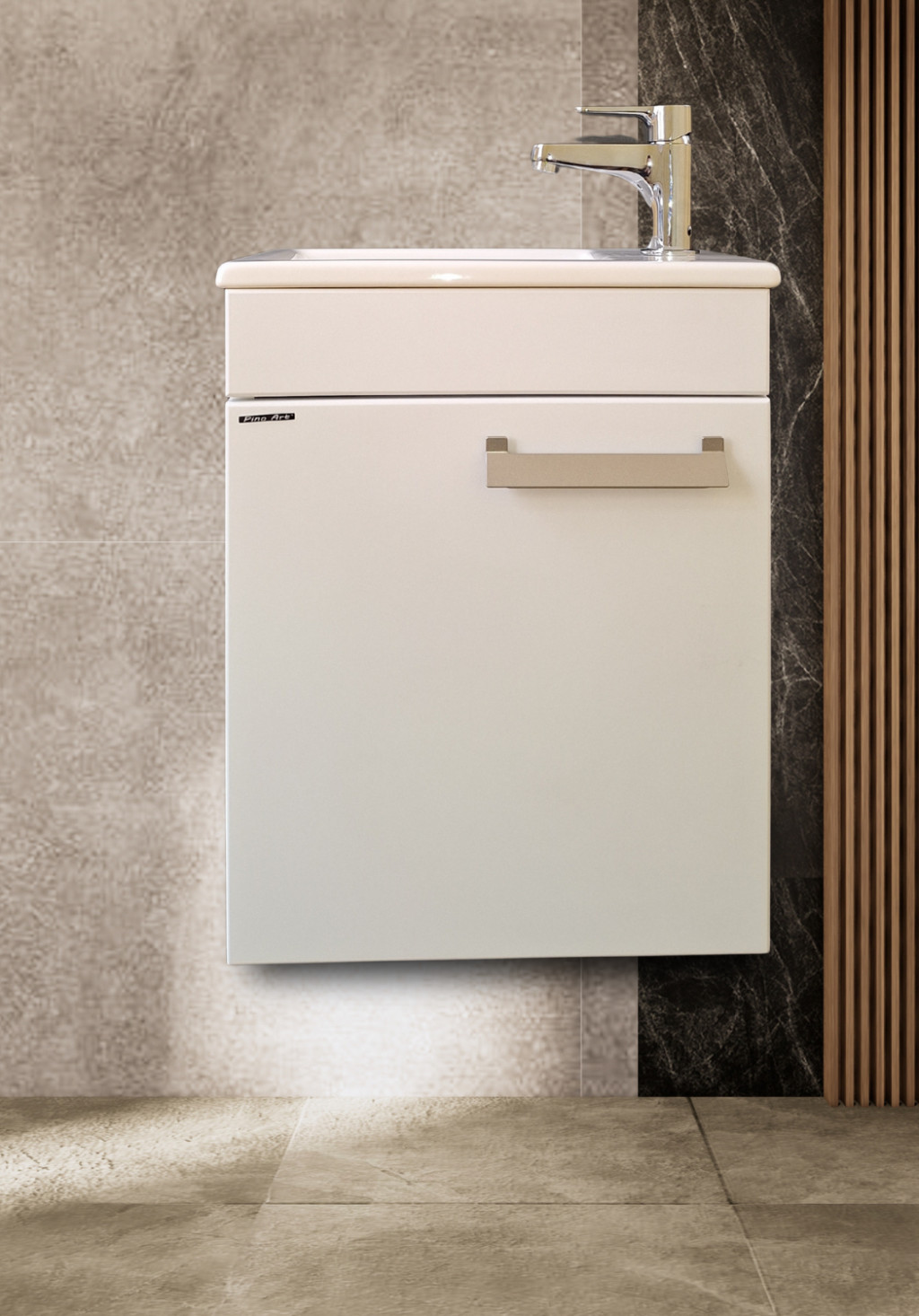 A Polwood EMIL 40 modellje egy kompakt méretű, mégis stílusos fürdőszobabútor, amely ideális választás kis alapterületű helyiségekbe, például WC-be, vendégfürdőbe vagy mosókonyhába. A letisztult, minimalista formavilág selyemfényű fehér felülettel és diszkrét eleganciával illeszkedik bármilyen enteriőrbe.