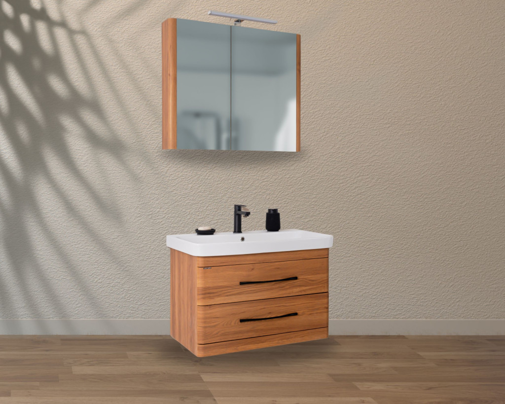 • Elegáns mosdó: A bútor egy modern, letisztult mosdóval érkezik, amely tökéletesen illeszkedik a szekrényhez.