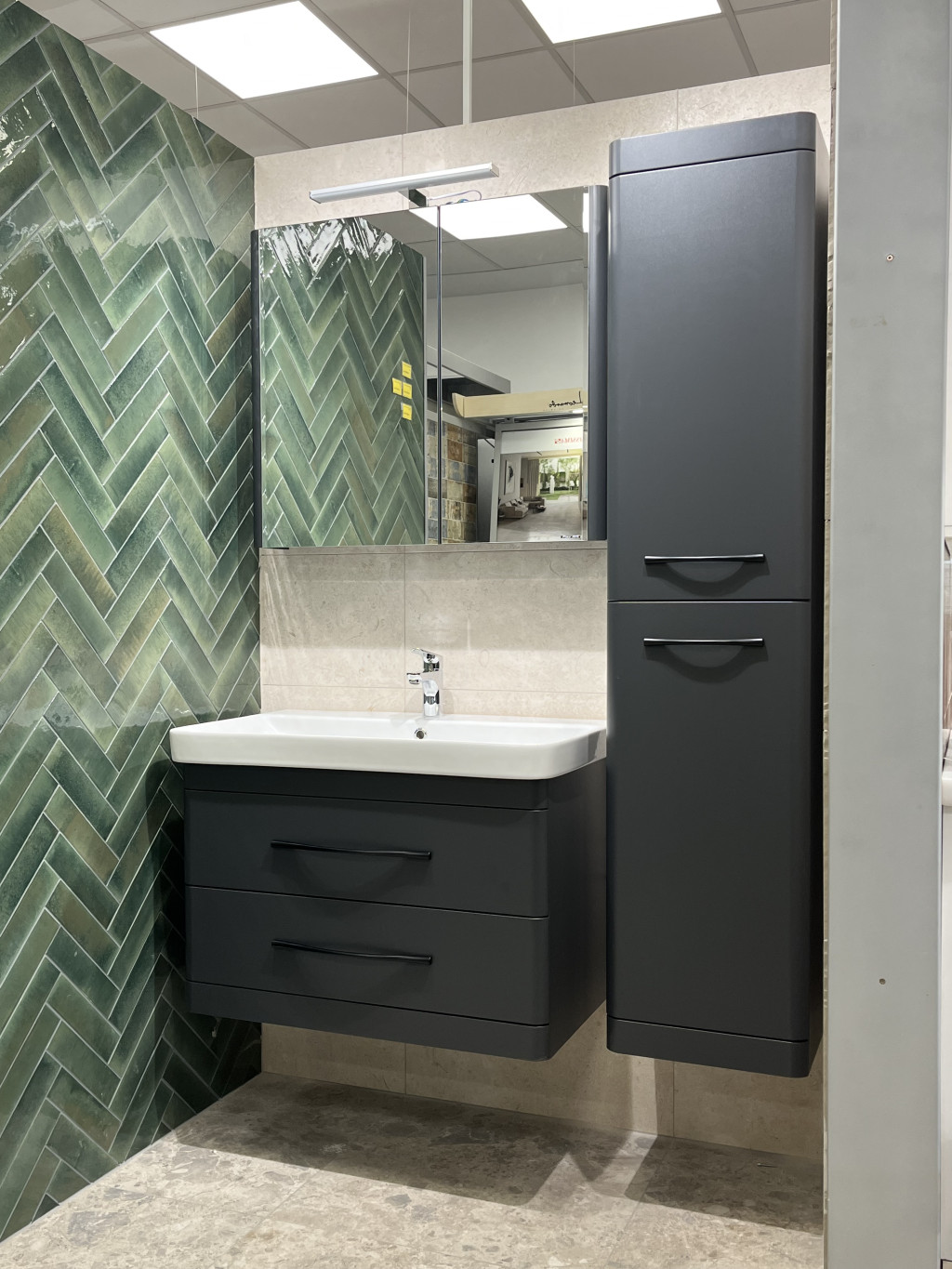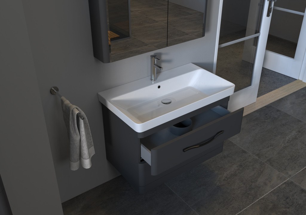 LUXOR A80 Antracit Fóliázott Függesztett soft-close rendszerű két fiókos Fürdőszobabútor Kerámiamosdóval,