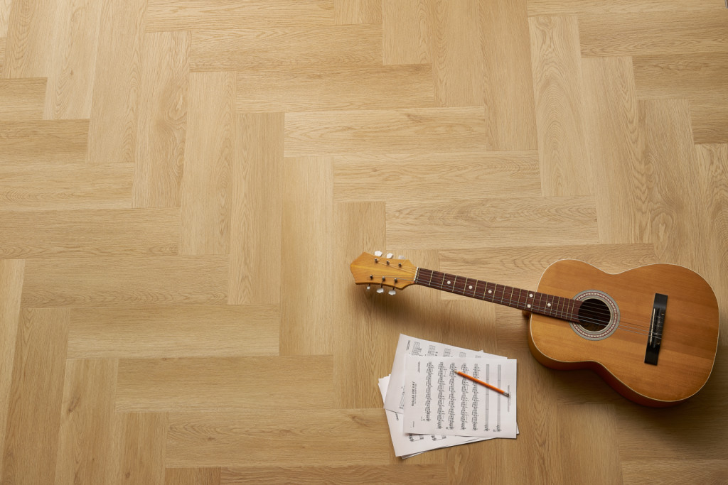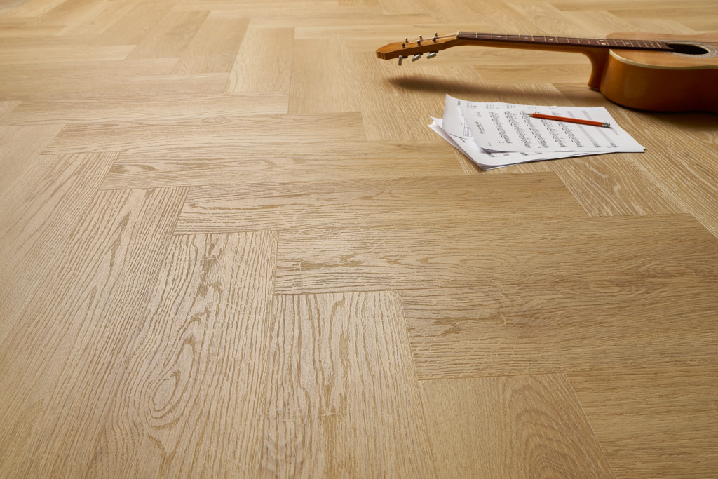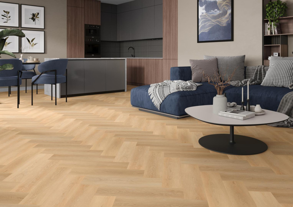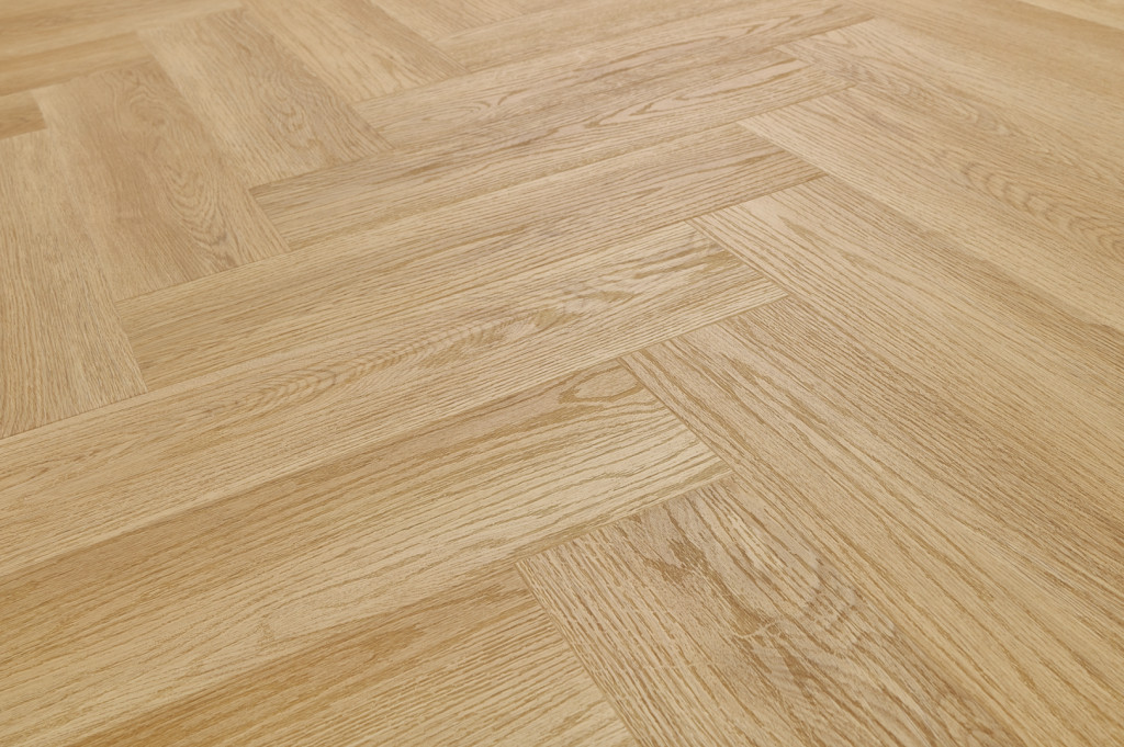 Halszálkás design: A klasszikus, időtlen minta modern újragondolása természetes tölgyfa árnyalatokkal, amelyek a helyiségnek kifinomult és barátságos megjelenést kölcsönöznek.
