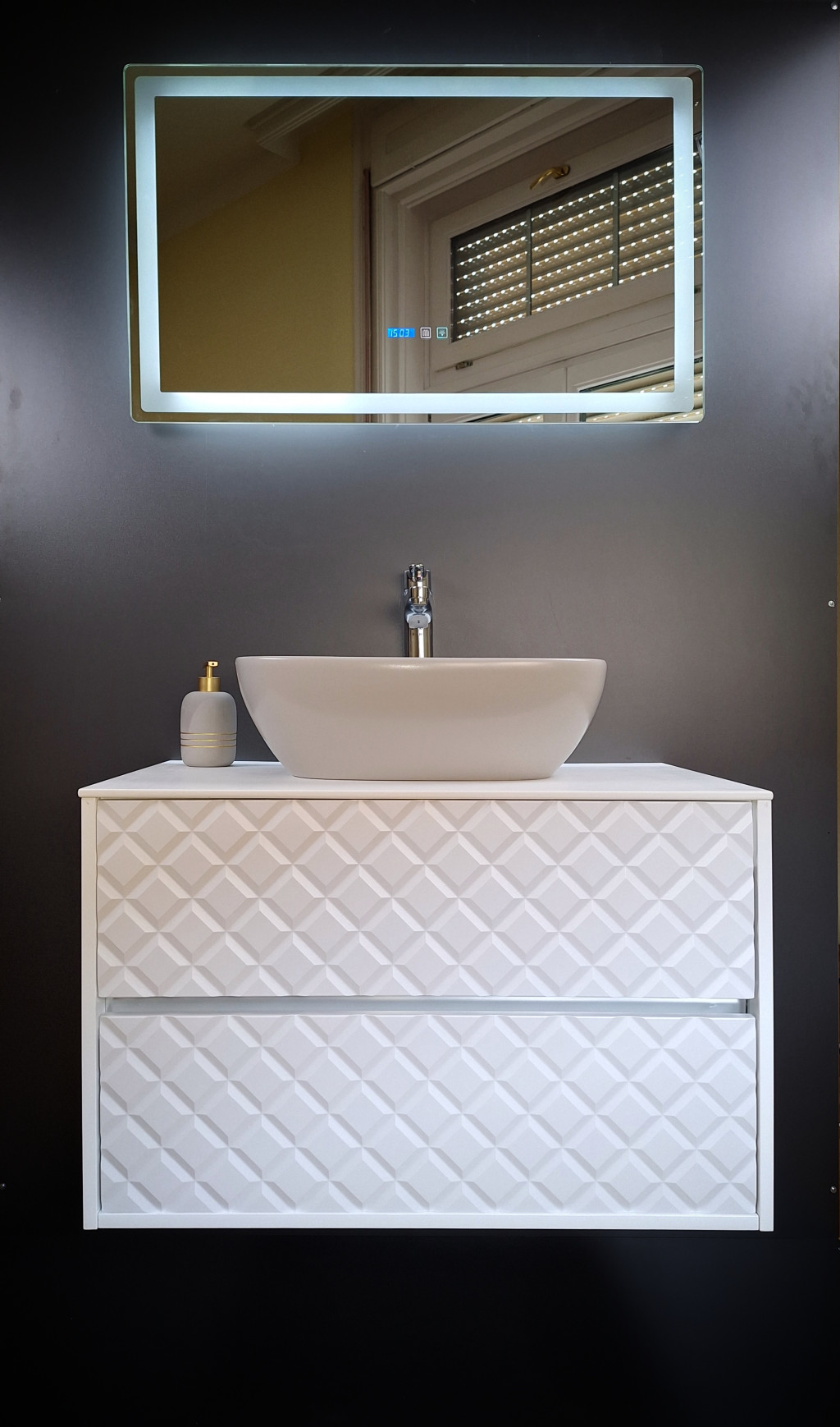 • Kompakt méret és minimalista dizájn: A bútorcsalád minden eleme úgy készült, hogy a funkcionalitást és az esztétikát tökéletes egyensúlyban tartsa, különösen kis alapterületű fürdőszobák számára előnyös.