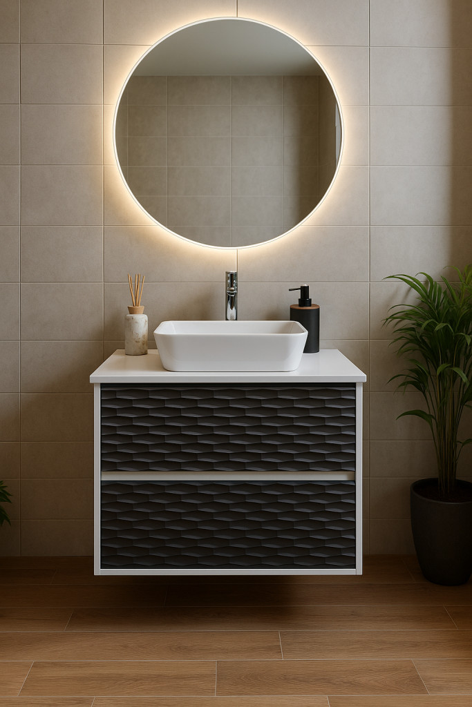 • Kompakt méret és minimalista dizájn: A bútorcsalád minden eleme úgy készült, hogy a funkcionalitást és az esztétikát tökéletes egyensúlyban tartsa, különösen kis alapterületű fürdőszobák számára előnyös.
