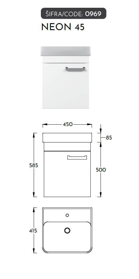 A Neon termékcsalád modern és avantgárd stílust képvisel, különleges színválasztékkal, amely magában foglalja a fehér, sárga, zöld és antracit szürke árnyalatokat, valamint a beton textúráját. A termékcsalád szekrényei készre szerelve érkeznek, így a felszerelésük gyors és egyszerű. Az alsó szekrény két dobozban van csomagolva – egyikben maga a szekrény, a másikban egy tartós kerámia mosdó található. A felső tükör polcokkal ellátott, és egy dobozban érkezik, valamint a függesztett állószekrény is külön csomagban van.