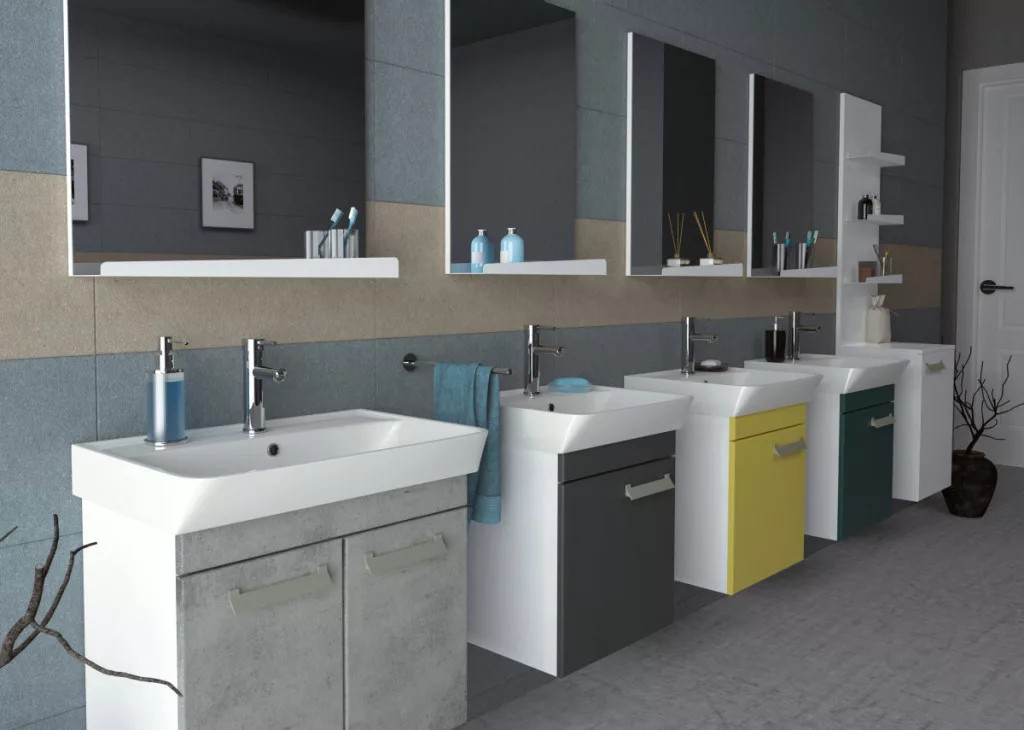A Neon termékcsalád modern és avantgárd stílust képvisel, különleges színválasztékkal, amely magában foglalja a fehér, sárga, zöld és antracit szürke árnyalatokat, valamint a beton textúráját. A termékcsalád szekrényei készre szerelve érkeznek, így a felszerelésük gyors és egyszerű. Az alsó szekrény két dobozban van csomagolva – egyikben maga a szekrény, a másikban egy tartós kerámia mosdó található. A felső tükör polcokkal ellátott, és egy dobozban érkezik, valamint a függesztett állószekrény is külön csomagban van.