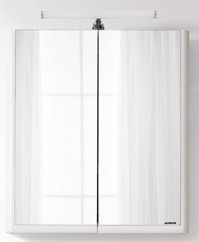 Soft ART 80 FEHÉR Selyemfényű készre szerelt Fóliázott Polcozott Tükrösszekrény LED Világítással , belső Konnektorral, világításkapcsolóval