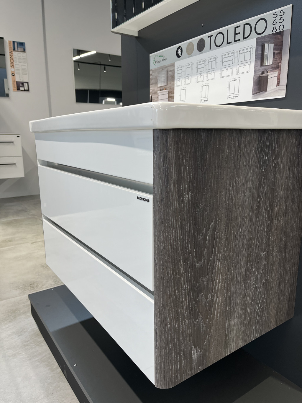 A TOLEDO termékcsalád a modern fürdőszobai bútorok egyik kiemelkedő darabja a Polwood kínálatában, mely letisztult stílusával és elegáns vonalvezetésével kiváló választás minden olyan enteriőrbe, ahol a funkcionalitás és az esztétika egyaránt fontos szerepet kap. Az egyszerűen integrálható bútorok különféle szín- és méretválasztékban érhetők el, így könnyedén igazodnak a különböző fürdőszobai stílusokhoz és méretekhez.