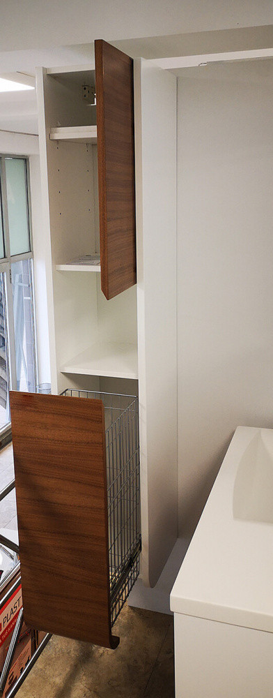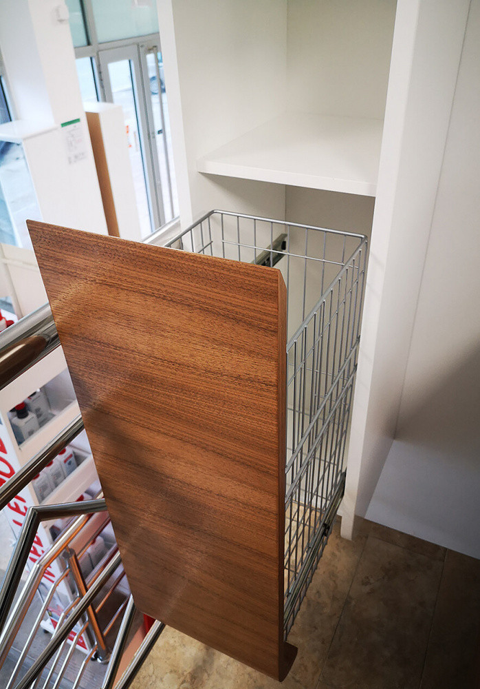 Venus ART D160 Diószínű Függesztett ceruzaszekrény a felső része polcos , alsó része szennyestartó kosaras.
