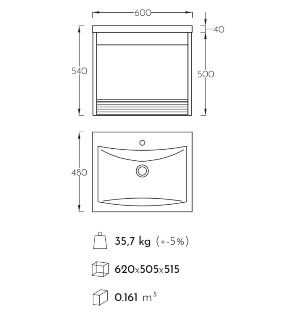 Venus D60 Dió Függesztett soft-close rendszerű nagyfiókos Fürdőszobaszekrény Műmárvány matt mosdókagylóval (60*54*48 cm)