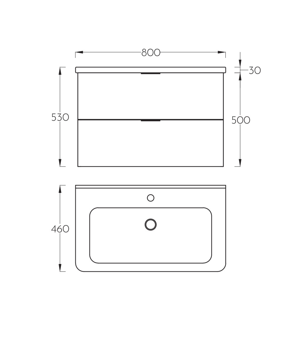 Kerámiamosdó: Elegáns, 80 cm széles mosdó, amely kiemeli a bútor modern, harmonikus vonásait.